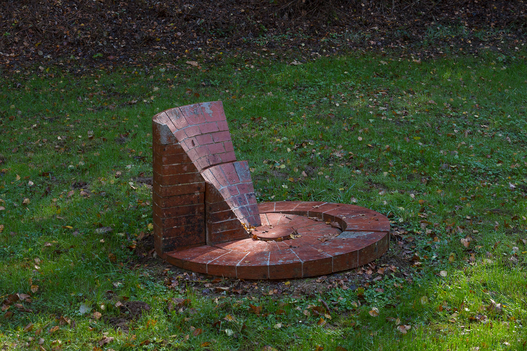 Zwischen den Polen von Architektur und Skulptur bewegt sich auch das dritte Bauwerk, das »Haus für August Sander«, welches sich in nächster Nähe zum „Teatro“ auf derselben Erhebung fi ndet. Es ist wie Burys Bauwerk eine Architektur, ein „Haus“, das eine Spannung zwischen skulpturalem Äußeren und betretbarem, eher funktional ausgerichtetem Inneren aufbaut. Dagegen entzieht sich Hegewalds Bauwerk in seiner geringen Größe allen Verpflichtungen der Dimensionen, schaltet durch seine Beschaffenheit jede funktionale Vereinnahmung aus. Die innere Konzentration auf einen Kern, die Reduktion auf elementare Grundformen von Kreis und Kegel machen die Dichte der kleinen Masse aus. In dieser Reduzierung mit dem Sander-Monument vergleichbar, wirkt das minimale Bauwerk für seine Verhältnisse ebenso monumental wie der gewaltige Kubus. Im Dialog der beiden absolut konträren Monumente wird die Relativität von Größen umso deutlicher. Im Bezug auf seine Umgebung bildet das kleinste Bauwerk eigene Maßstäbe aus, weitet die Senke zu einer ausgedehnten Ebene, schreibt ihr durch seine auratische Kleinheit eine Ferne ein. Erstaunlicherweise besteht die Skulptur gegenüber der monolithischen Architektur des Sander-Hauses; subtil unterläuft sie die Konfrontation, da sie ihr Verhältnis zum Umfeld auf andere Weise definiert. Manifestiert der zementgrau verputzte Kubus als Fremdkörper in der natürlichen Umgebung die grundlegende Verschiedenheit von Kunst und Natur, fügt sich die anziehend warme Tonigkeit der Ziegel in dem Maße in ihr Umfeld, wie sie sich von ihm abhebt. Verfestigt zur starren Form läßt die ›gebrannte Erde‹ den natürlichen Ursprung durchscheinen. In dem in Material und Form anklingenden Archaismus verfällt das Bildwerk nicht in die Klage über eine verlorene Idylle, die sich an dieser Stelle in dem wüsten Rest eines Steinbruchs zeigt, sondern stellt sich mit stiller Beharrlichkeit entgegen.