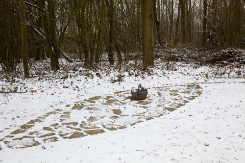 Der höchste Punkt des zum ›Tal‹ gehörenden Geländes zeichnet sich bereits durch besondere Gegebenheiten aus, die natürlich wie künstlich sind. Da gibt es einen alleinstehenden, von weitem sichtbaren alten Baum und einen Durchfahrtsweg. Beide integriert und involviert Wolfgang Luy symbolhaft in seine Arbeit. Gedanklich wie formal sind sie Schlüsselelemente, an deren Bedeutungen Luy anschließt und um die er im wahrsten Sinne des Wortes Kreisfiguren legt. Dieselben sind real und imaginär und durchdringen sich mit ihren jeweils anders gelagerten Zentren und Achsen gegenseitig. Das Kunstwerk ist kaum als solches auszumachen, will als dieses allein auch nicht verstanden werden. Vielmehr liefert es Angebote, die den Betrachter zum Akteur werden lassen. Er wird, ohne es möglicherweise vorerst zu bemerken, zum ebenfalls thematisierten Bestandteil der Skulptur. Diese ist als ein Platz mit unterschiedlichen Bedingungen und Erlebnishorizonten ausgewiesen. Die Möglichkeit, auf die plastischen Denkvorgaben zu reagieren, sie aufzugreifen, weiterzuspinnen und auf sich bezogen zu erfahren, steht jedem frei.
