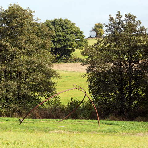 Der Steinkreis im Tal mit einem Durchmesser von ca. 8 m, wird aus zwei Dutzend kleinerer und größerer Steine gebildet, die in der Wiese eingebettet sind. Nur einer von ihnen, der nördlichste, ragt klar aus der Wiesenebene heraus und markiert ein Ende der Meridianlinie des Kunstwerks, die über das Zentrum des Steinkreises weiter nach Süden verläuft. Im Zentrum des Kreises befindet sich ein runder Jura-Stein mit einer kreisförmigen Vertiefung in seiner Mitte, die oft mit Regenwasser gefüllt ist. Aus dem südlichsten Punkt des Steinkreises ragt senkrecht ein Stahlbogensegment empor, an dessen Ende sich ein Stahlring befindet. Der große zweiteilige Stahlbogen steigt im Nordosten des Steinkreises aus der Erdoberfläche heraus und verschwindet wieder im Nordwesten des Kreises im Wiesengrund. Der Stahlbogen ist so berechnet und orientiert, dass er die Sonnenbahn zur Sommersonnenwende wiedergibt, wobei die Bewegung des Schattens, den der Bogen wirft, eine präzise Choreographie nach astronomischen Gesetzmäßigkeiten vollzieht.