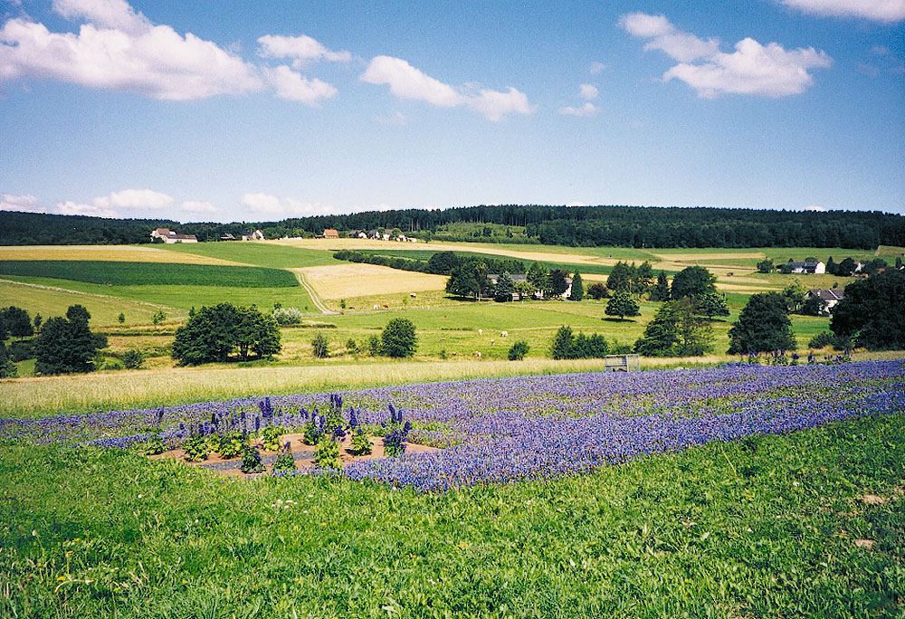 Der »Feldgarten«, der in früheren Generationen den Hausgarten des Bauerns ergänzte, soll im wesentlichen durch Nutzpflanzen, im Wechsel der Jahreszeiten, gestaltet werden. Um dies über die Gestaltungsfragen hinaus zu gewährleisten, ist die Gesamtkonzeption einschließlich der Pflanzpläne des Landschaftsarchitekten Kim Wortelkamp mit dem Landwirt Otmar Orfgen abgestimmt. In die teils großflächigen Farb- und Formfelder fügen sich kleinere Vegetationsflächen ein. Um diese vor Wild zu schützen hat der Zimmermann Uli Hüsch eigens veränderbare Zäune gefertigt, die grafisch und raumbildend wirken.
